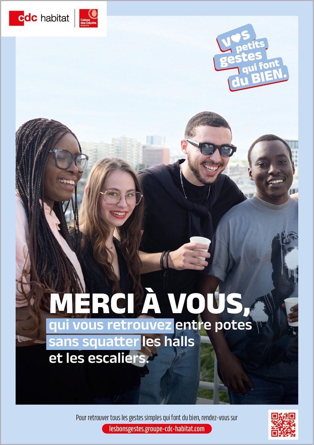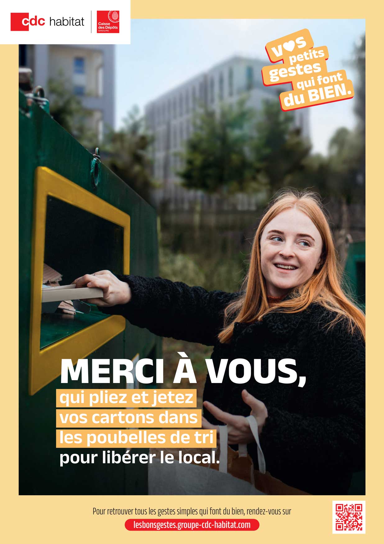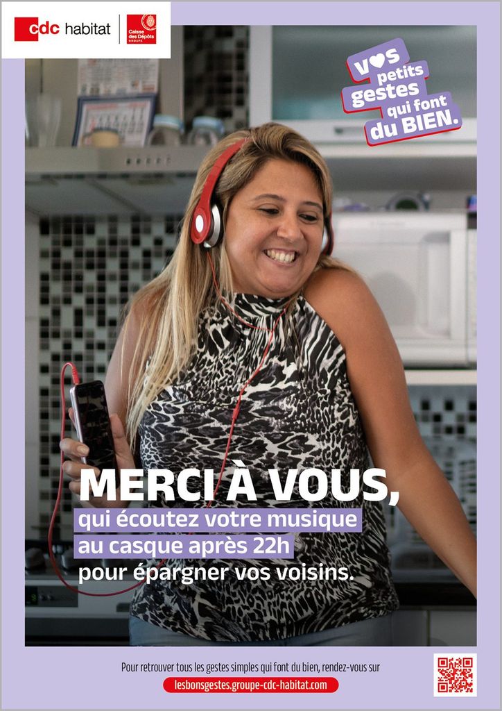 Merci à vous… qui écoutez votre musique au casque, qui utilisez correctement les équipements de votre résidence et qui triez vos poubelles. Il suffit de quelques gestes simples pour améliorer votre quotidien et celui de vos voisins.
